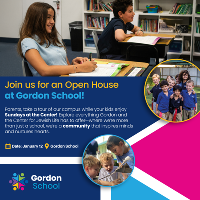 | Summary: | Join us for an Open House that’s all about discovering the magic of Gordon School and the vibrant programs of the Center for Jewish Life! |