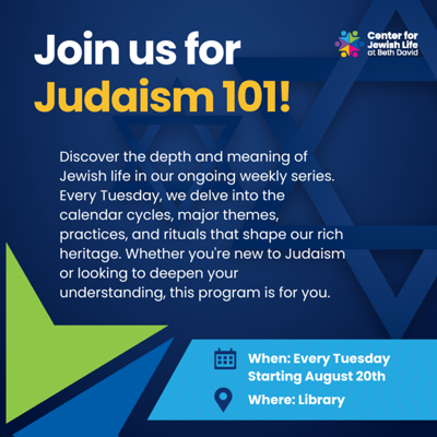 - 2024-12-03 18:00:00 2025-02-25 19:00:00 America/New_York Judaism 101 with Rabbi Jacobs Welcome to Judaism 101 this class is open to anyone (http://preview.jewishmiami.org/events/judaism_101_with_rabbi_jacobs-20241203) Center for Jewish Life at Beth David, Miami, FL 33129 Stephanie Newman nschalit@centerbd.org